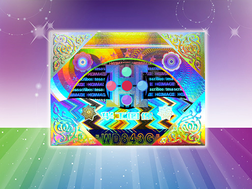 2.多層的公開和隱秘安全特征。用戶可用肉眼識別產(chǎn)品表觀公開的可讀序列號以及標識透明灰度漸變效果。同時,用戶也可以用放大鏡、專用解碼片或激光筆識別出與公開可讀序列號一致的效果;